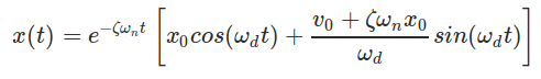 where x0 and v0 are initial displacement and velocity and ωd is the damped natural frequency of the system. The damped natural frequency is calculated as below: